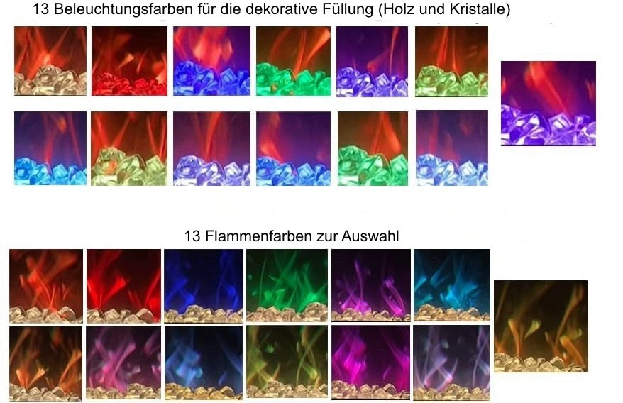Mystflame Galaxy 50 - Wand-Elektrokamin, 13 Flammenfarben und Unterbeleuchtung, Brennmaterial aus Holz und Kristallen, Thermostat 750/1500W, Fernbedienung und Touchscreen