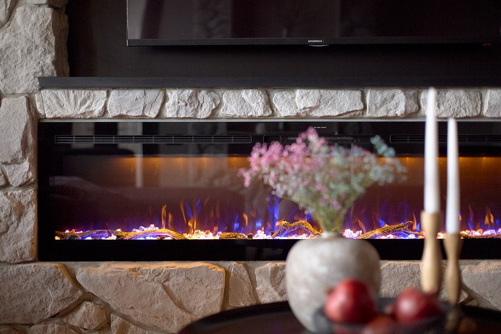 Alle Elektrokamine werden mit dekorativen Elementen geliefert. Die gesamte Galaxy-Serie sowie die Modelle Crystal 36 und Crystal 40 sind mit dekorativen Kristallen und keramischen Holzscheiten ausgestattet, die bei Bedarf über den Kristallen platziert werden können. Die Kamine der Serie La Perla sowie die Modelle Crystal 50, Crystal 60 und Crystal 72 sind mit Kristallen und realistischen Nachbildungen von Holzscheiten mit Glut-Effekt ausgestattet. Diese Holzscheite erzeugen einen realistischen visuellen Effekt von Flammen eines klassischen Holzkamins.